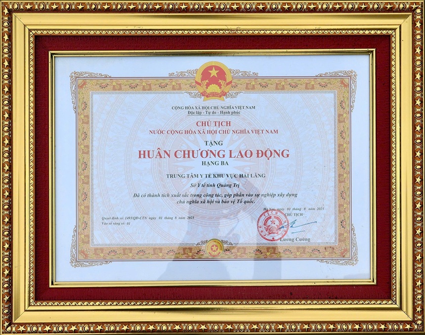 Trong không khí phấn khởi, tự hào của toàn ngành y tế đang ra sức thi đua lập thành tích chào mừng các ngày lễ, sự kiện lớn của đất nước, tại Đại hội thi đua yêu nước tỉnh Quảng Trị diễn ra trong ngày 28/10/2025,Trung tâm Y tế khu vực Hải Lăng (Sở Y tế tỉnh Quảng Trị) vinh dự được Chủ tịch nước Cộng hòa xã hội chủ nghĩa Việt Nam tặng Huân chương Lao động hạng Ba vì đã có thành tích xuất sắc trong công tác, góp phần vào sự nghiệp xây dựng chủ nghĩa xã hội và bảo vệ Tổ quốc.